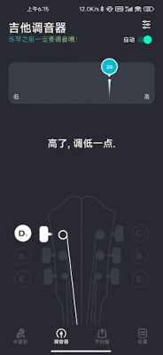 • Provides standard tuning for guitars. During tuning, manually select the string to tune, and the indicator will display different colors indicating if the pitch is too low (red), too high (blue), or in tune (green).