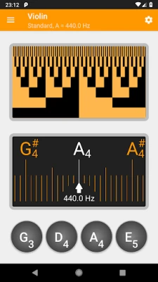 You can also use the tuner to tune by ear. The buttons at the bottom of the screen play the reference tones and you can tune accordingly. The tones are synthesized, and respects the setting of the concert pitch.